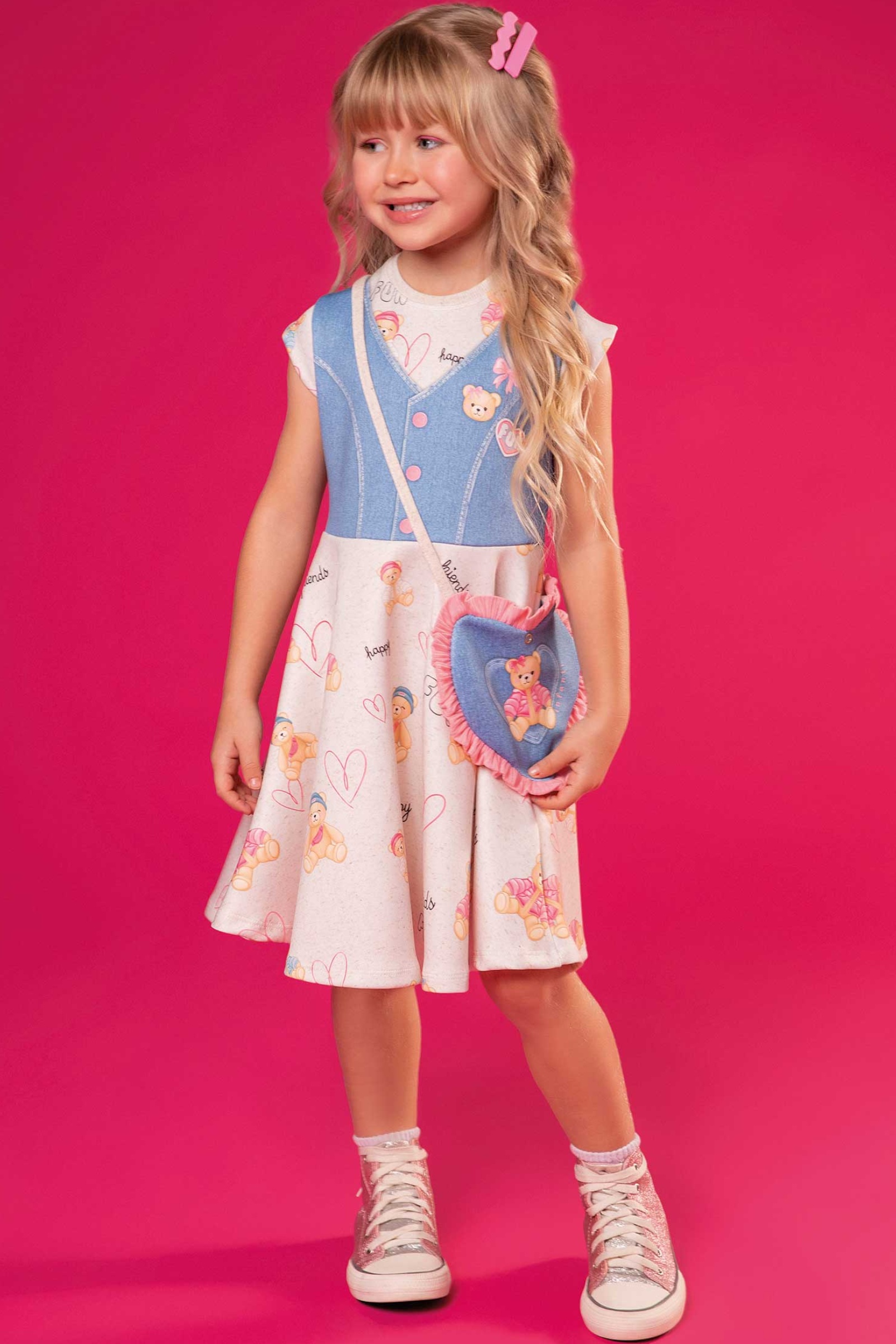 Vestido em Fly Tech manga curta - Acompanha bolsa - INFANTI FUN